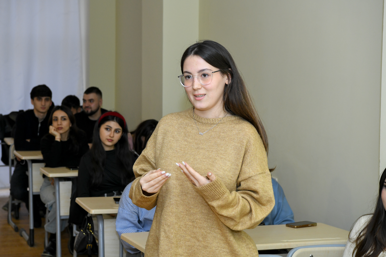 Sonra tələbələr “Memarlıq erqonomikası” fənni çərçivəsində hazırladıqları təqdimatla çıxış ediblər. Təqdimatlarda memarlıq və şəhərsalma kontekstində məkanın ruhunu formalaşdıran amillərdən, şəhərlərin özünəməxsus xarakterinin insanlarla həmin məkan arasındakı emosional bağlılığı gücləndirməsindən geniş bəhs olunub. Bildirilib ki, vizual estetikadan sonra məkanı yaşadan, ona nəfəs verən və insan hisslərinə toxunan elementlər memar və dizaynerlər üçün xüsusi əhəmiyyət daşıyır.