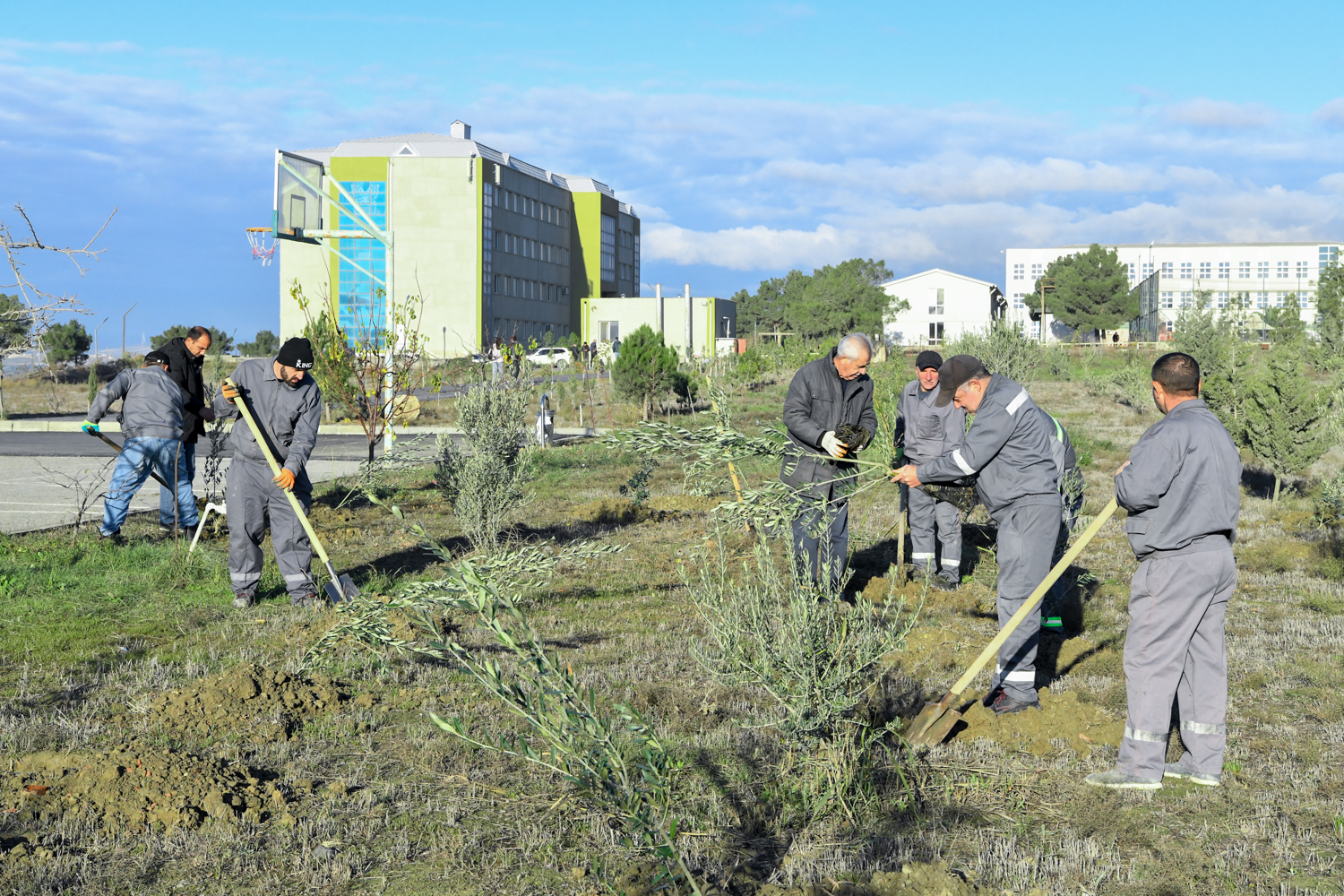 University leadership, staff, and students actively participated in planting various types of trees on the campus territory in accordance with the nature, climate, and terrain of the Absheron Peninsula.