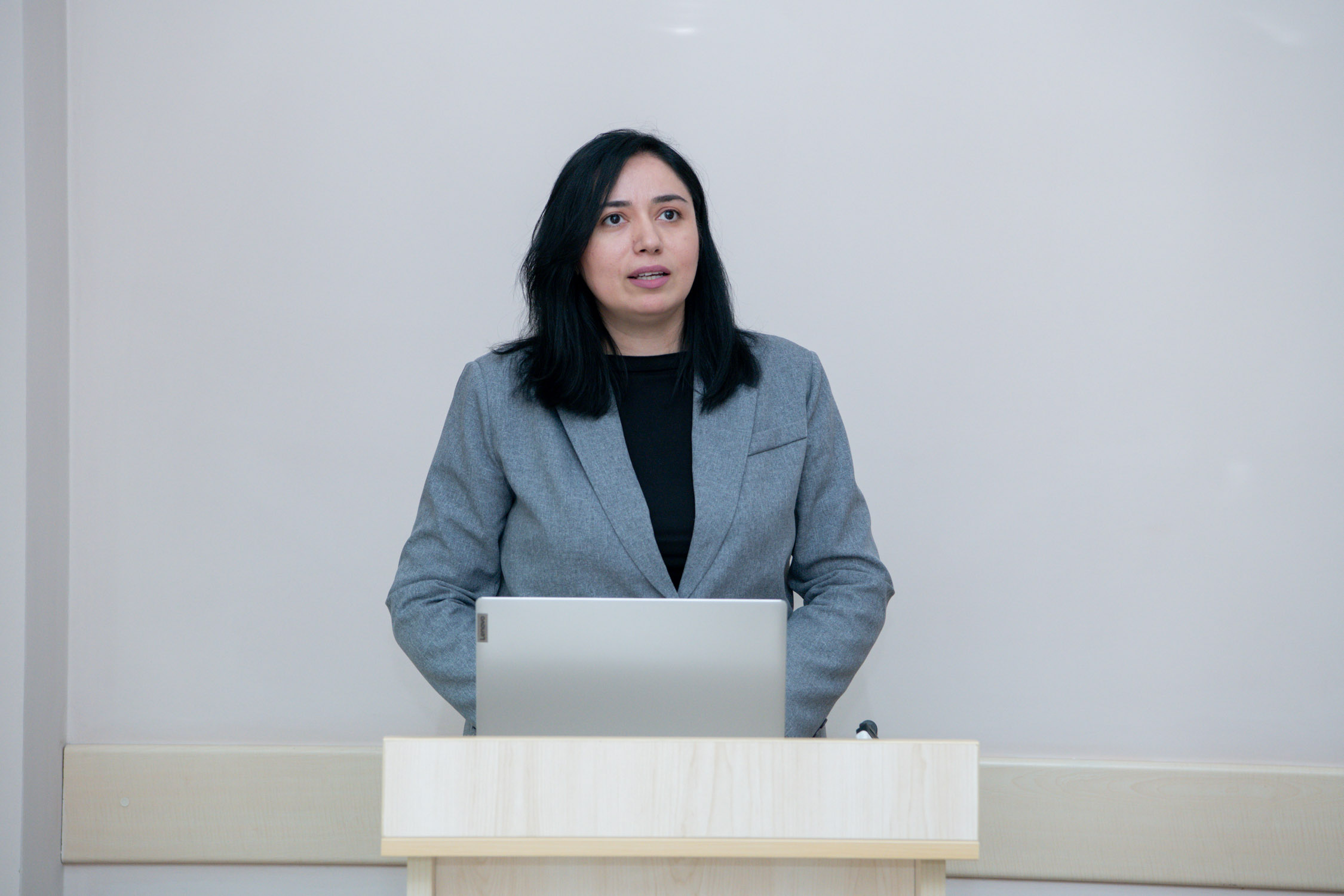 At the event, Ramila Bashirzade, Senior Lecturer at the Department of Business Administration, Doctor of Economic Sciences and Associate Professor, delivered a presentation on the topic. It was noted in the address that in recent years, artificial intelligence technologies have become one of the key components of economic development in Azerbaijan. These technologies are exerting a significant influence on labour market development, the strengthening of the competitive environment, and the enhancement of economic efficiency. The widespread application of artificial intelligence in such sectors as finance, transport, and agriculture has already begun to yield tangible results. It was stated that artificial intelligence enables the optimisation of transport systems, the analysis of financial data for the preparation of forecasts, and the increase of productivity in agriculture. Emphasis was also placed on the fact that "smart city" projects being implemented in the liberated territories are creating conditions for the adoption of new technological approaches and the generation of employment opportunities. Attention was drawn to the fact that while certain jobs are being automated as a result of the implementation of artificial intelligence, new professions and specialisations are simultaneously emerging.