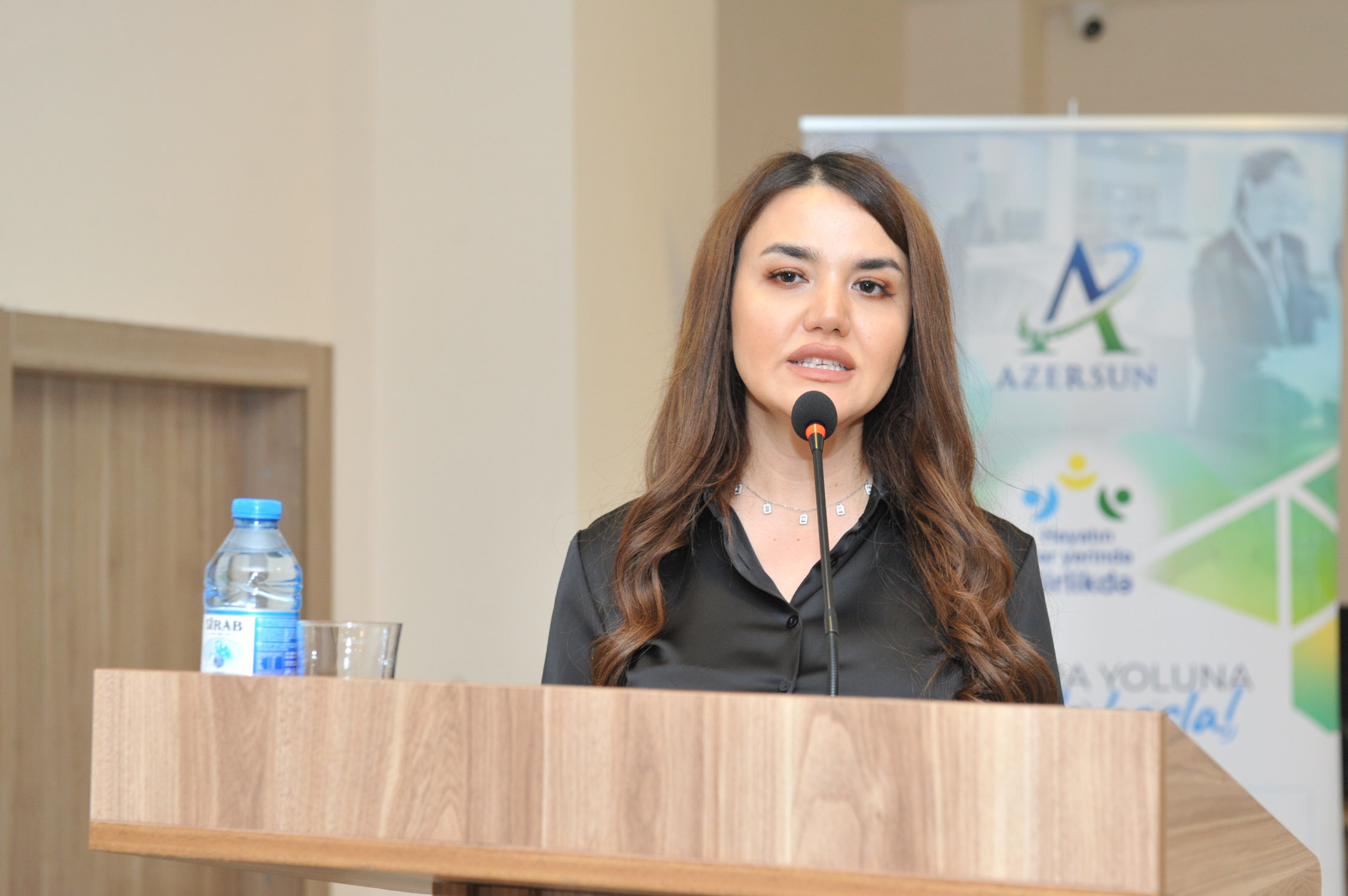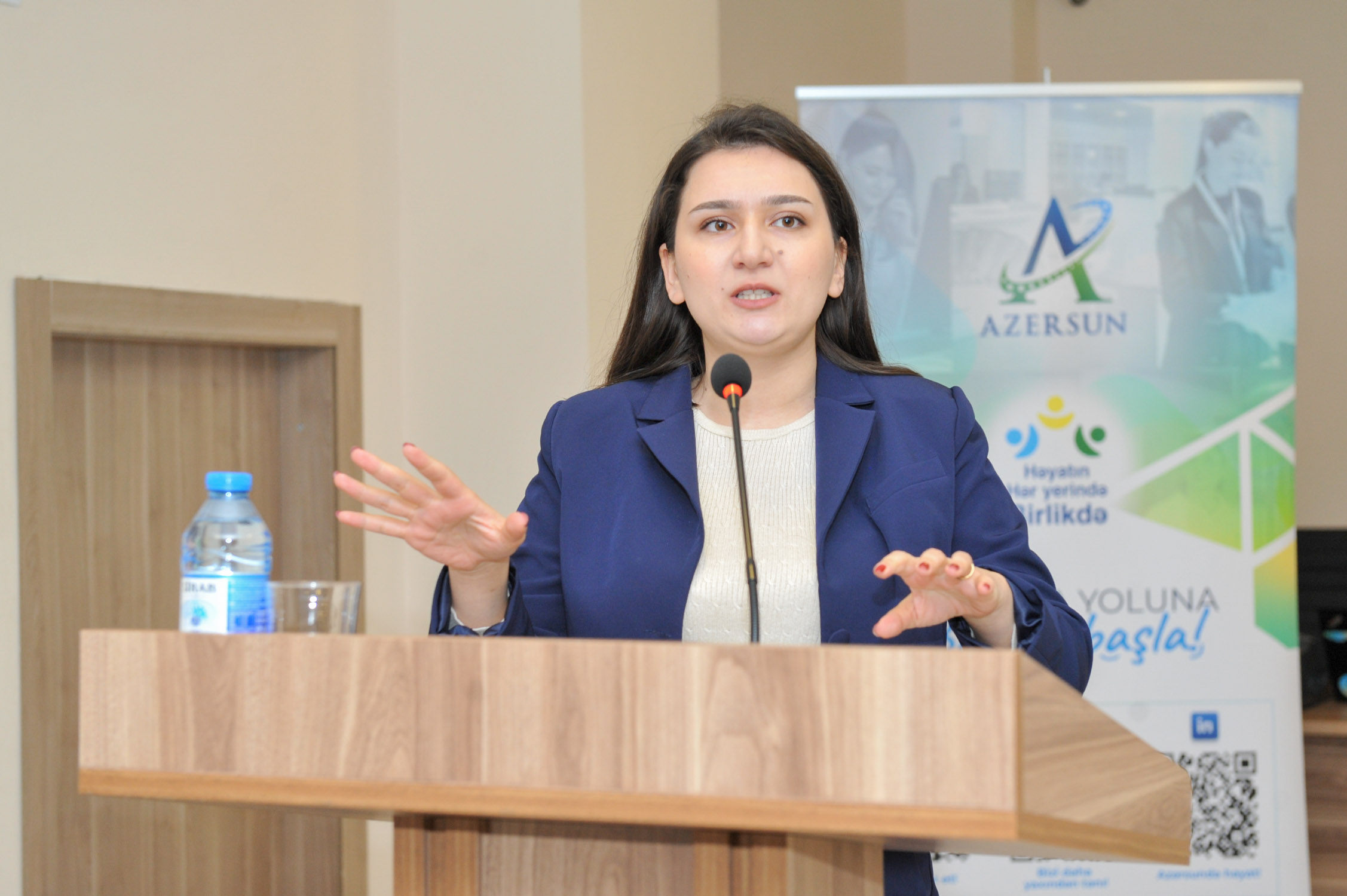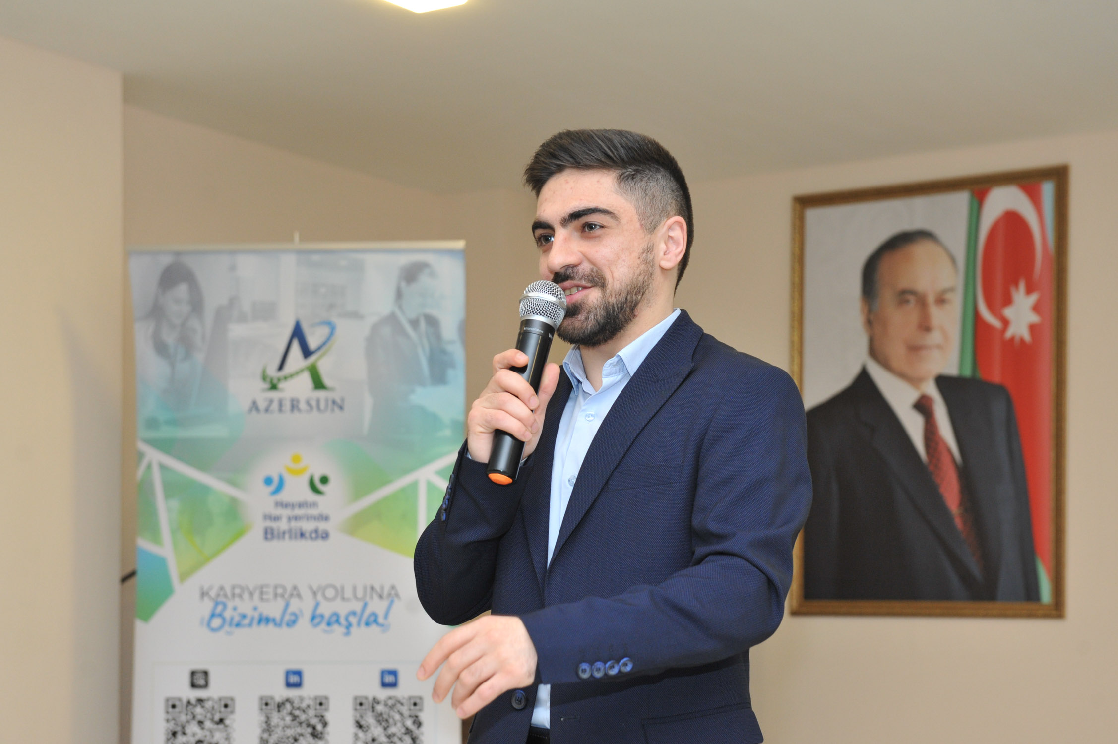 Subsequently, Fidan Gadimaliyeva Asadova and Meraj Baharov, Senior Talent Acquisition Specialists at Azərsun Holding, delivered presentations. The presentations provided general information about the holding, its subsidiary enterprises, their areas of activity, as well as various projects implemented by the company.